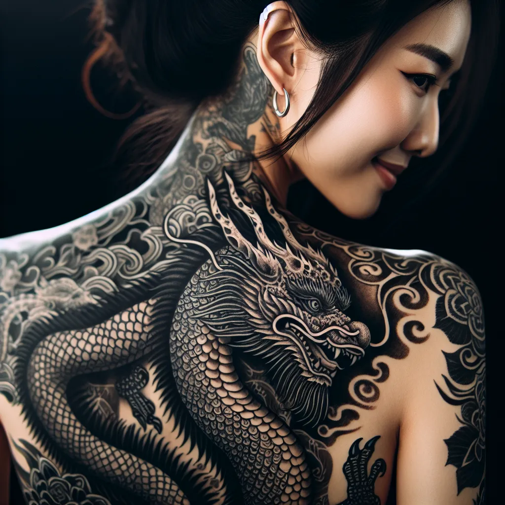 Татуировки дракона на спине у девушек популярны по нескольким причинам: